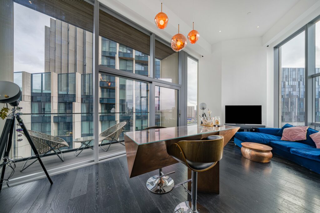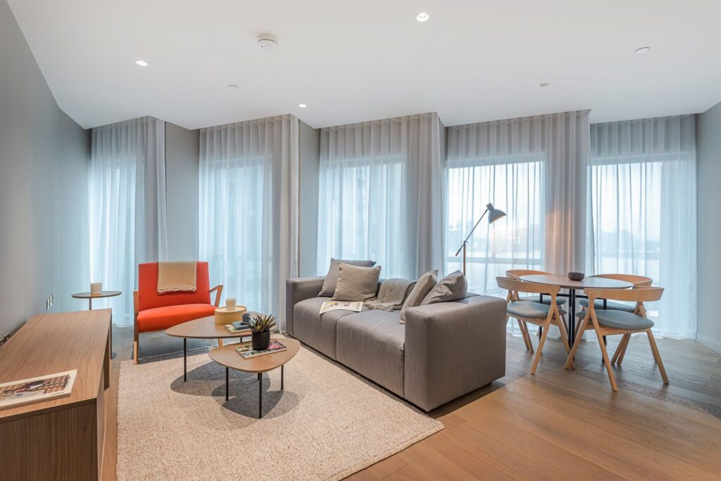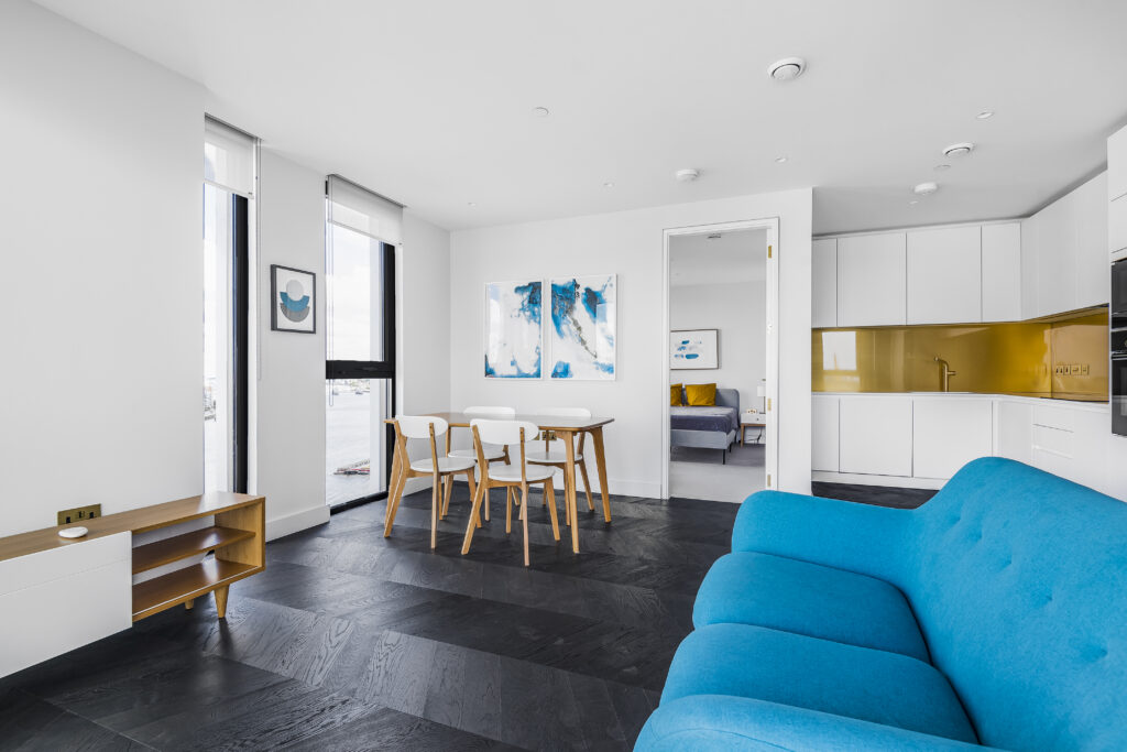 Five prism-shaped towers offer sky-high homes and plenty of venues for visitors to eat and drink. Just two minutes’ walk from the tube is this unique mix of innovative architecture, restaurants and bars, all set along a tree-lined walkway along the Thames.