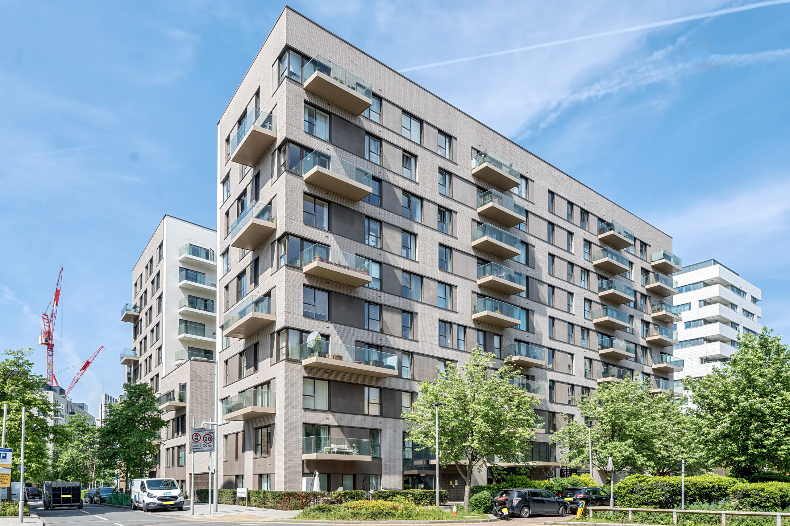 The Norton’s simple, brick façade is reminiscent of the dockland warehouses that once characterised this neighbourhood. Glass balustrades mean unobstructed balcony views over the waterfront and surrounding gardens.
