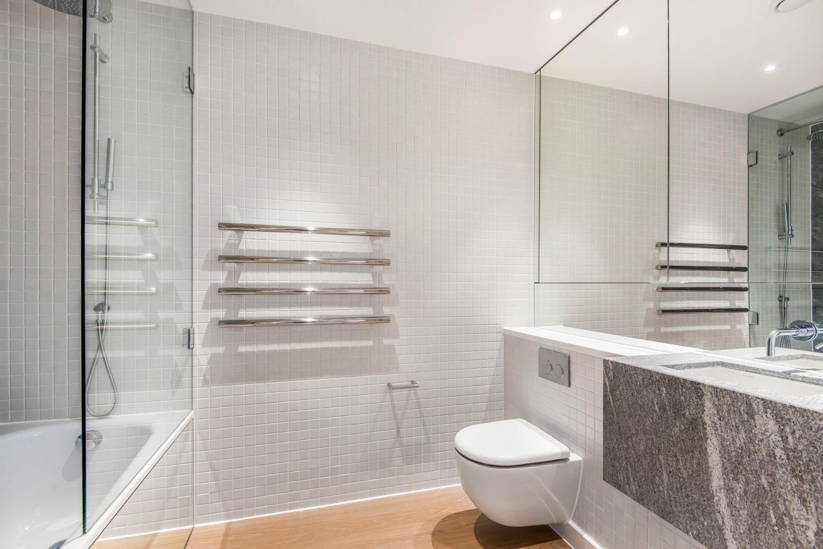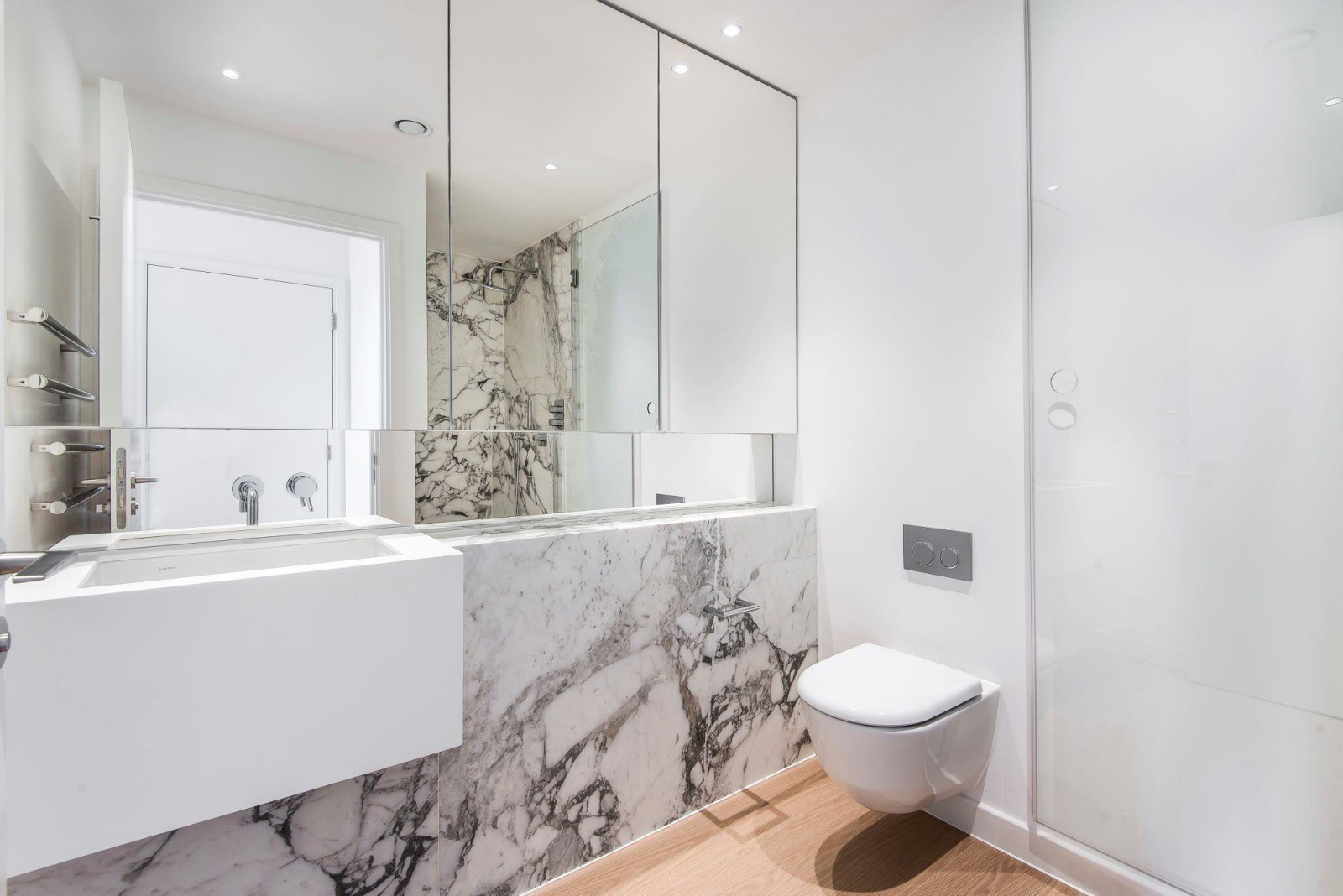 The apartment consists of a very spacious living and kitchen area, with real wood flooring throughout. The kitchen has real marble worktops and built in appliances, including dishwasher. Both bedrooms are a great size, with the master coming complete with luxury en-suite bathroom, housing free standing cubicle. There are also built in wardrobes in both bedrooms. The master bathroom comes complete with shower over bathtub. Additional benefits include large private balcony with stunning views.