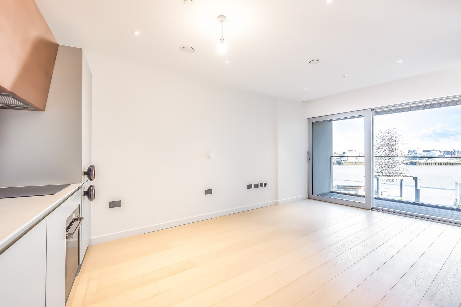 This Tom Dixon designed studio apartment is extremely spacious, with a dividing 'floating' wall to help separate the living space with the bedroom area. Offering stunning river views, with a large private balcony and very stylish and modern bathroom. Additional benefits include under floor heating, lots of built in wardrobe space and private balcony.