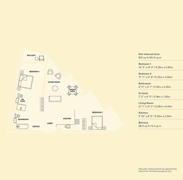 This apartment is a real one of a kind. Designed by Studio Ashby and offering spacious rooms with a traditional yet contemporary feel to the unique design and décor. There are large floor to ceiling windows allowing for tonnes of natural light and stunning river views to flood in. The bedrooms both come complete with 100% wool carpets with the master housing en-suite shower room and built in wardrobes. The bathrooms are ultra stylish with marble finishes and large shower cubicles. A large private balcony provides outside space for room to take in the amazing views.