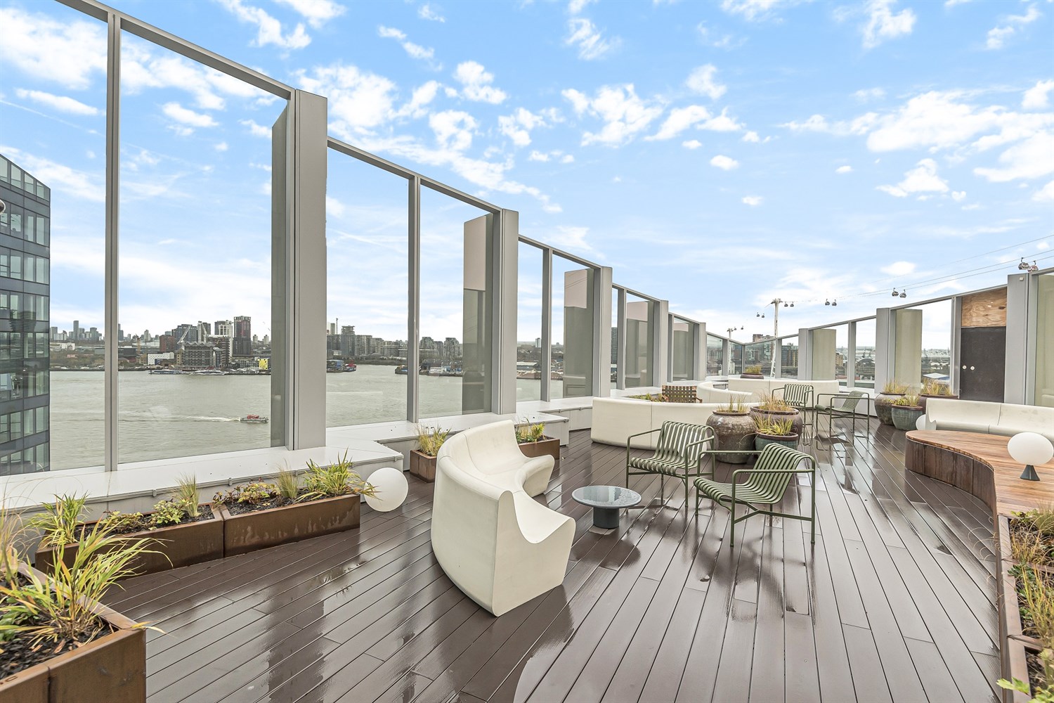 Living in Upper Riverside is much more than living in your own individual apartment, you are part of something much greater. This stunning family of five light filled, glass and stone towers, with roof gardens cascading to the edge of the Thames, occupies one of the best riverside locations in London. You will become part of the exclusive Upper Riverside Club, with private access to the gyms, sauna, a 15th floor swimming pool with panoramic views, rooftop terraces, shared spaces and more. The gardens connected to the riverfront will have river cafes, different types of retails and lively public spaces. Upper Riverside links to Peninsula Square with access to the Underground at North Greenwich (Jubilee Line), the O2, friendly restaurants and buzzy social areas.