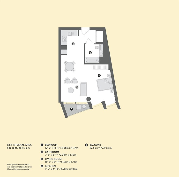 A luxury and modern studio apartment situated at No.4 Upper Riverside, Greenwich Peninsula. Complete with access to residents' swimming pool, gyms, roof terraces, media rooms and 24-hour concierge.