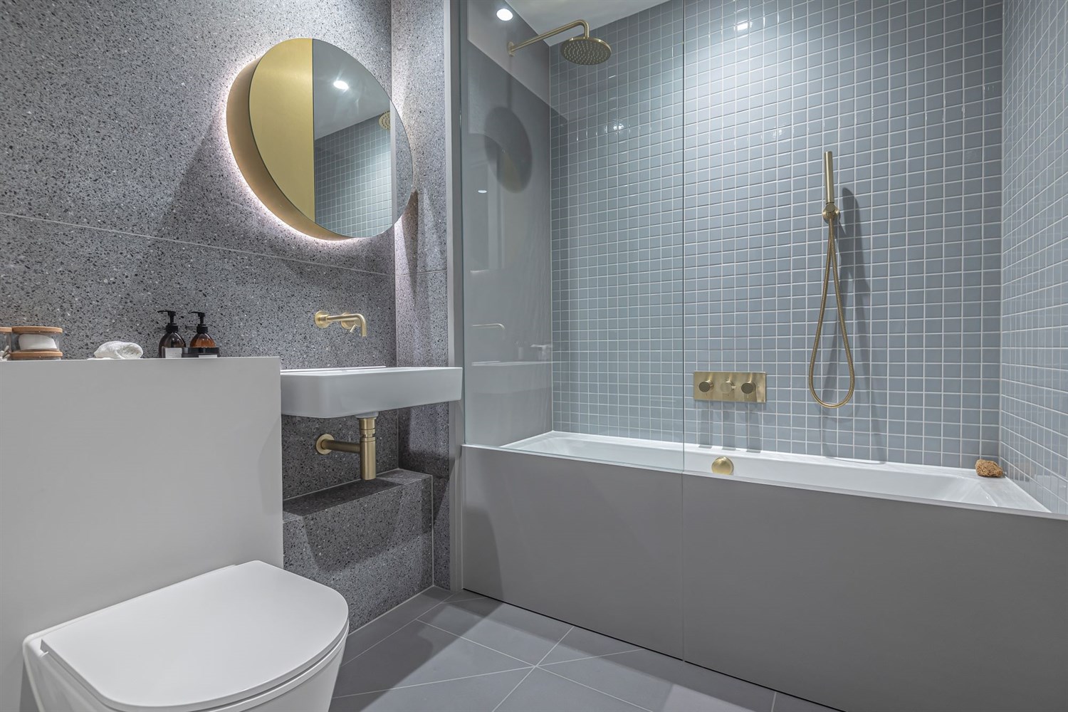 A luxury two-bedroom, two-bathroom apartment at No.4 Upper Riverside, Greenwich Peninsula. Comes with access to residents' swimming pool, gyms, roof terraces, media rooms and 24-hour concierge.