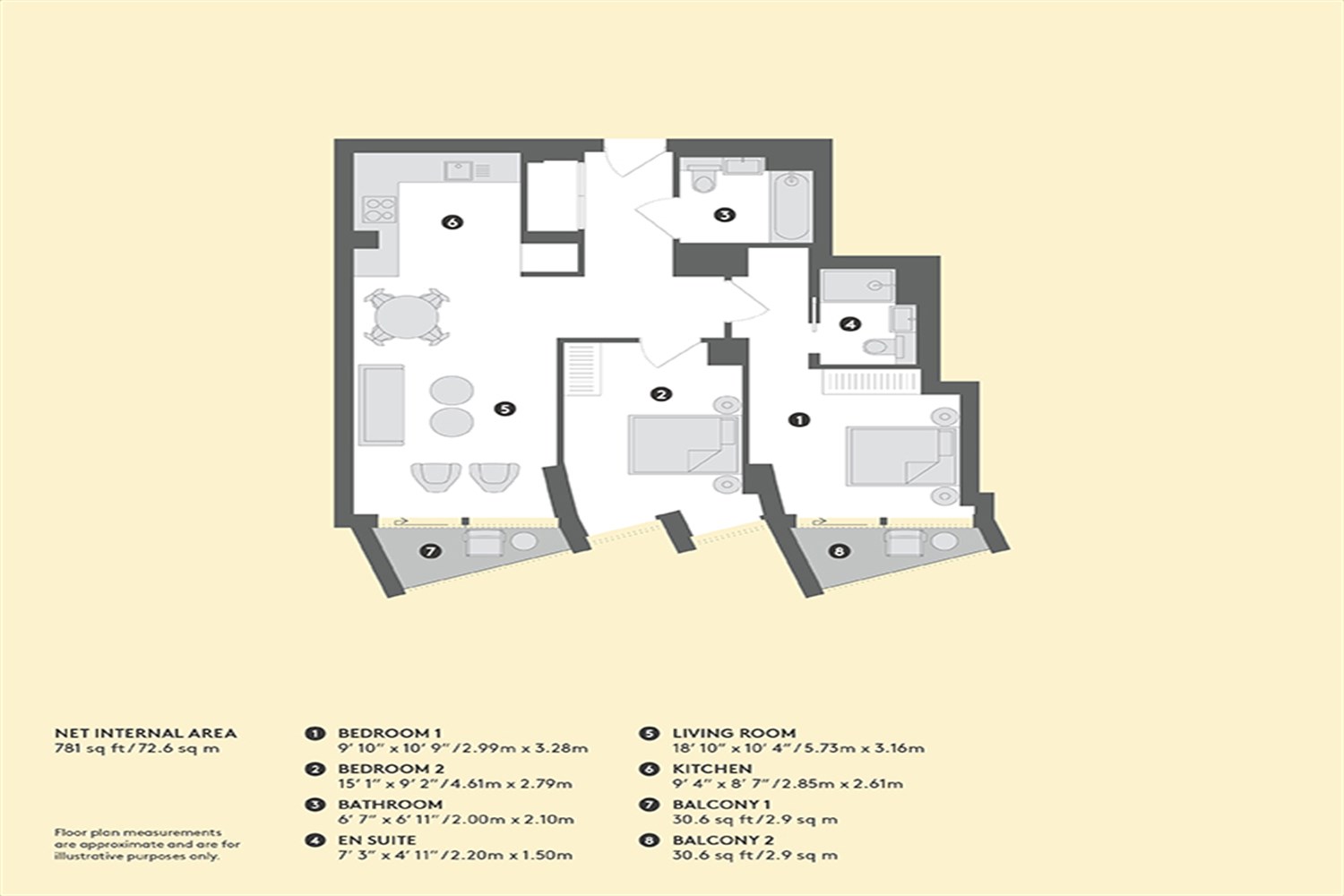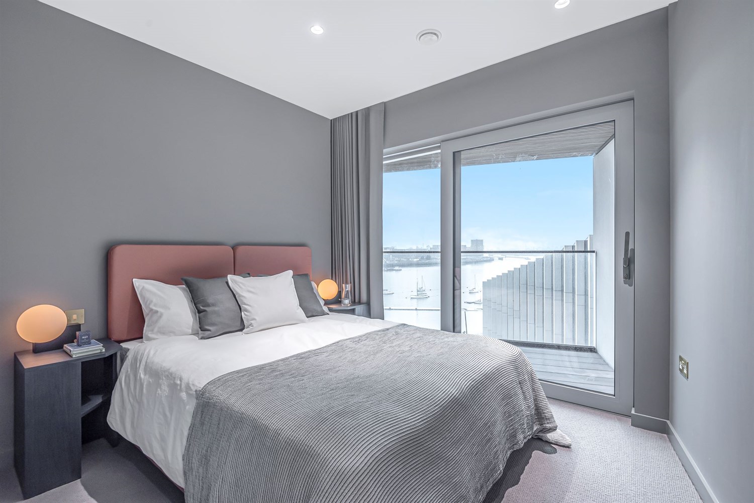 A luxury two-bedroom, two-bathroom apartment at No.4 Upper Riverside, Greenwich Peninsula. Comes with access to residents' swimming pool, gyms, roof terraces, media rooms and 24-hour concierge.