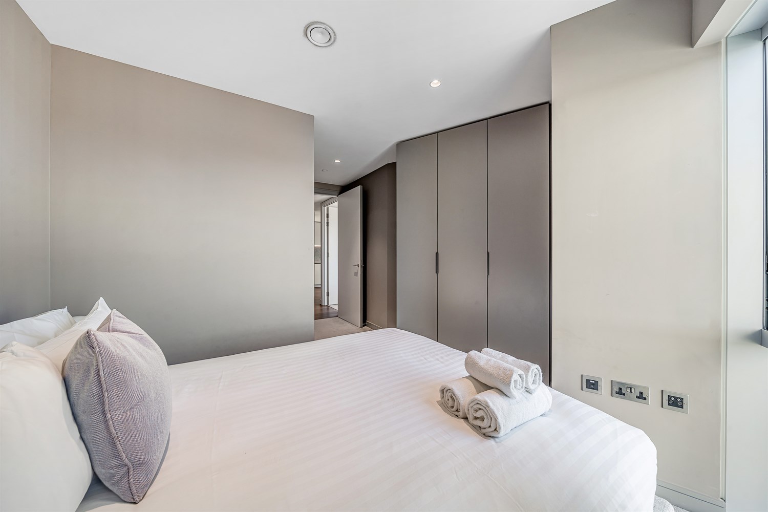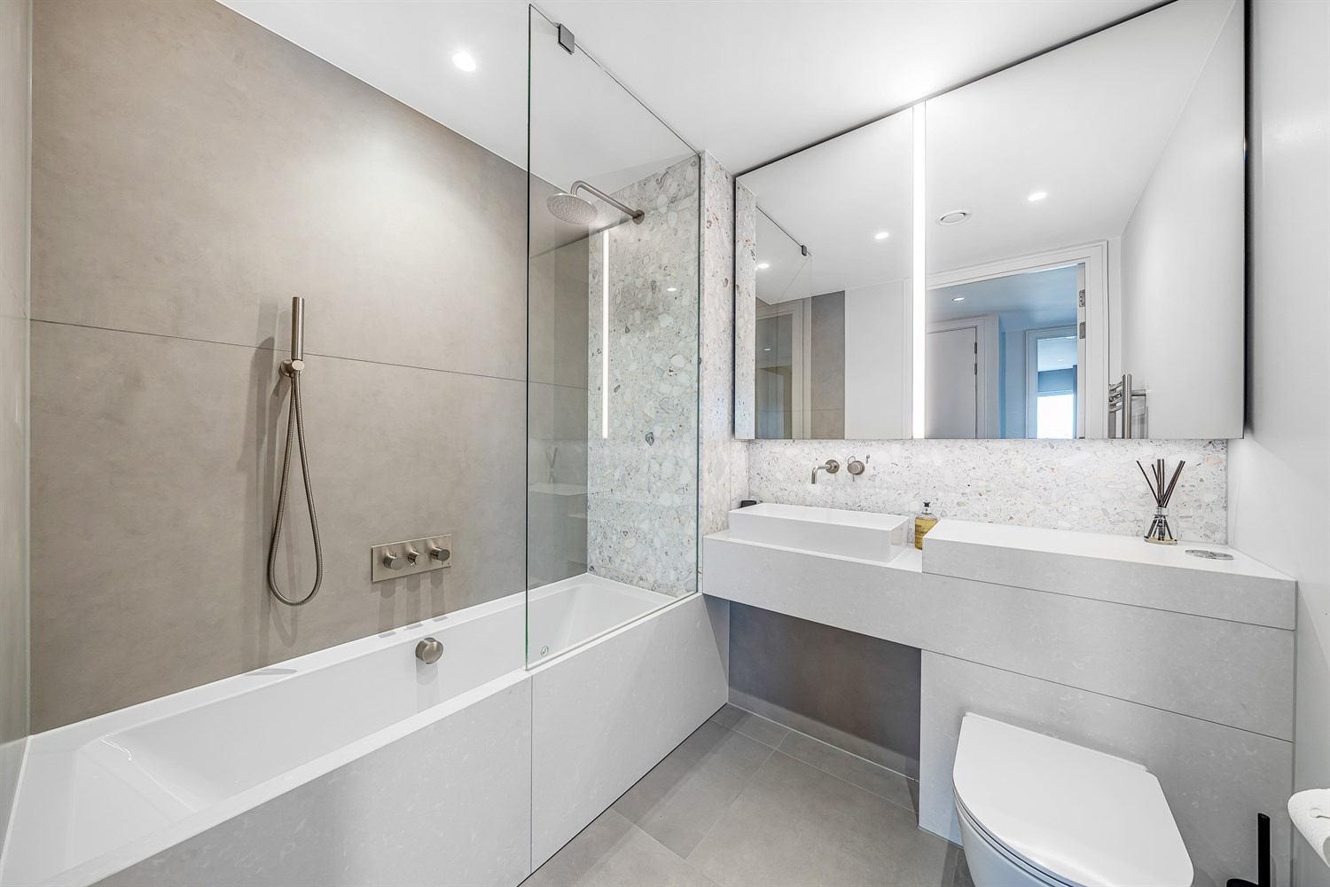 This apartment is a real one of a kind. Set over 712 square feet, offering a spacious reception room with a contemporary and luxurious feel to the unique design and décor, with full river views. There are large floor to ceiling windows allowing tonnes of natural light and stunning river views to flood in. The bedrooms have 100% wool carpets and built in wardrobes in both bedrooms. The master bathroom is ultra stylish with marble finishes and shower over bathtub and there is an en-suite shower room to the same impeccable standard.