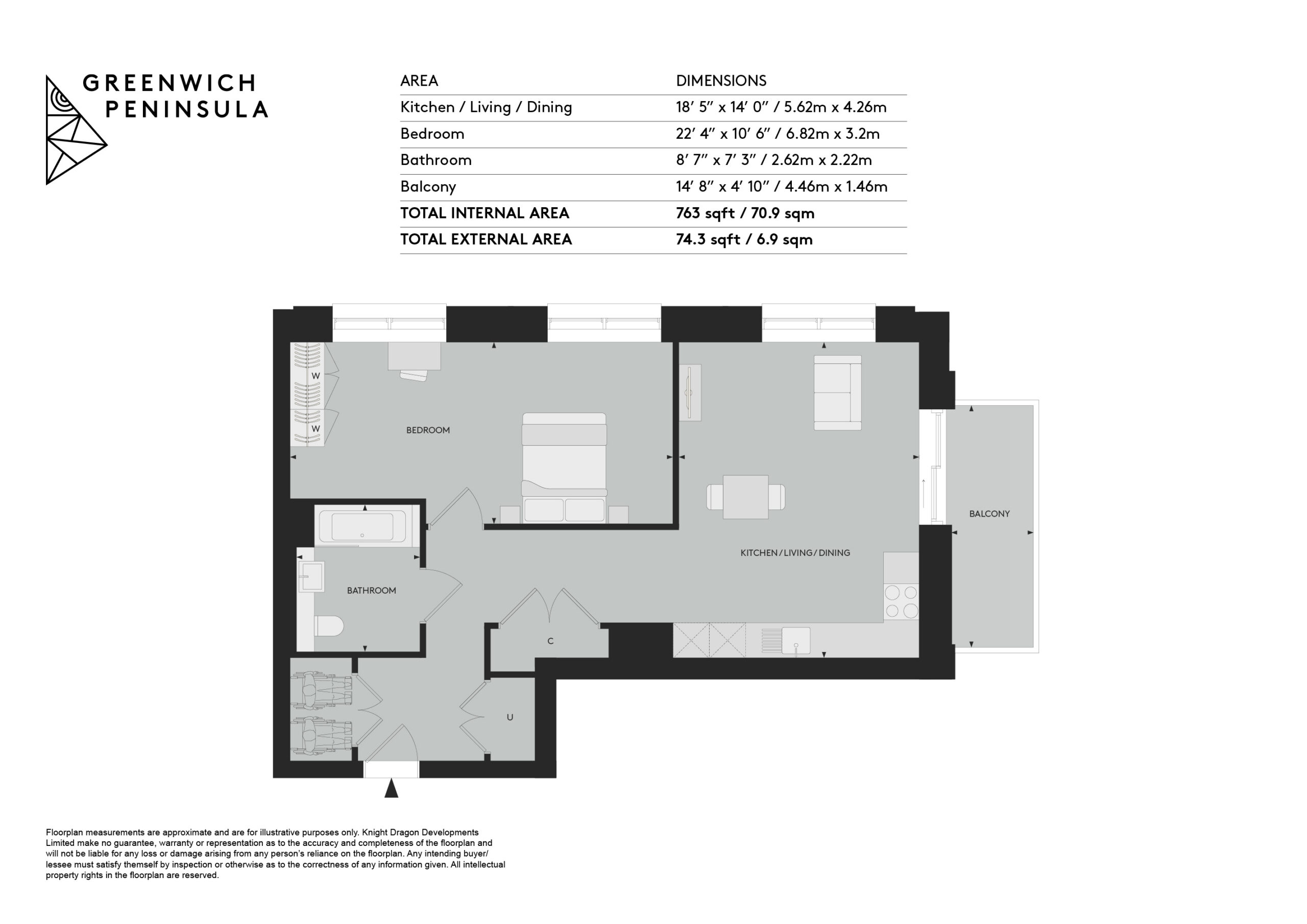 This BRAND NEW, one-bedroom apartment sits on the 16th floor of the building with unobstructed views out over the peninsula. It features 762 sqft of internal space including a bathroom, a large open-plan living/kitchen area and built in storage facilities, alongside an additional balcony.