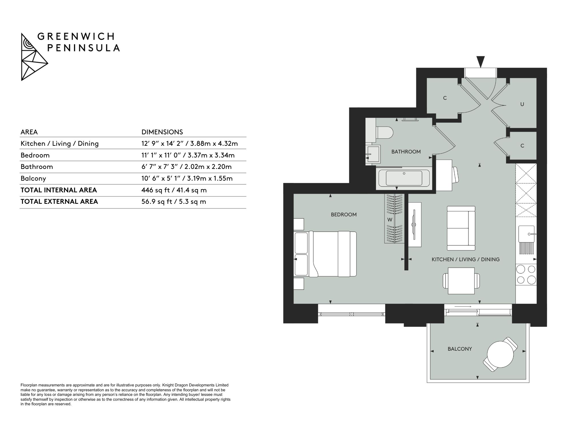 This BRAND NEW, studio apartment sits on the 3rd floor of the building with unobstructed views over the peninsula. It features 437 sqft of internal space including a bathroom, large open-plan living/kitchen area and built in storage facilities, alongside an additional balcony.