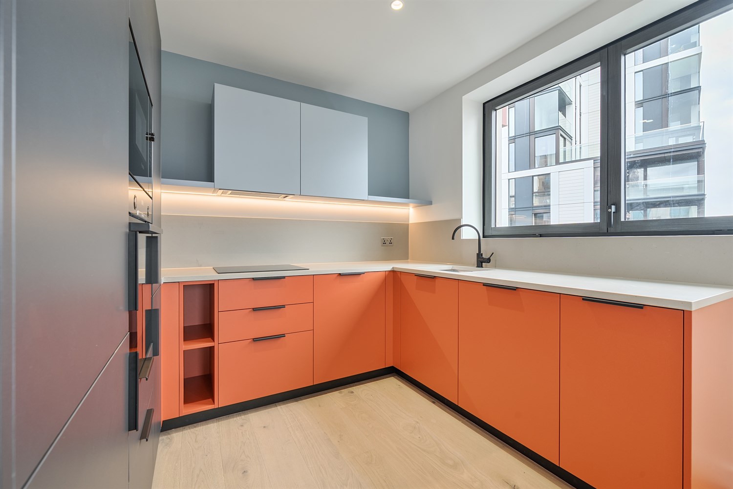This BRAND NEW, one-bedroom apartment sits on the 4th floor of the building with views out onto the private landscaped gardens. It features 565sqft of internal space, including a bathroom, large open-plan living/kitchen area and built-in storage facilities, alongside an additional balcony.