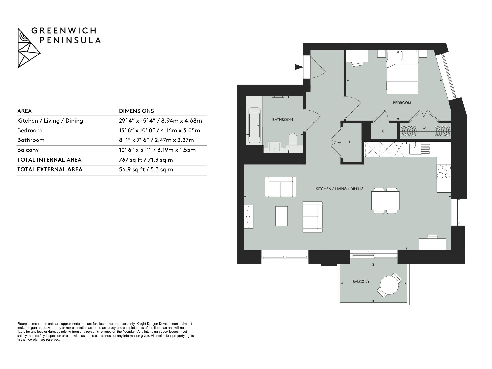 This BRAND NEW, one-bedroom apartment sits on the 2nd floor of the building with unobstructed views out onto the peninsula. It features 733 sqft of internal space including a bathroom, large open-plan living/kitchen area and built in storage facilities, alongside an additional balcony.