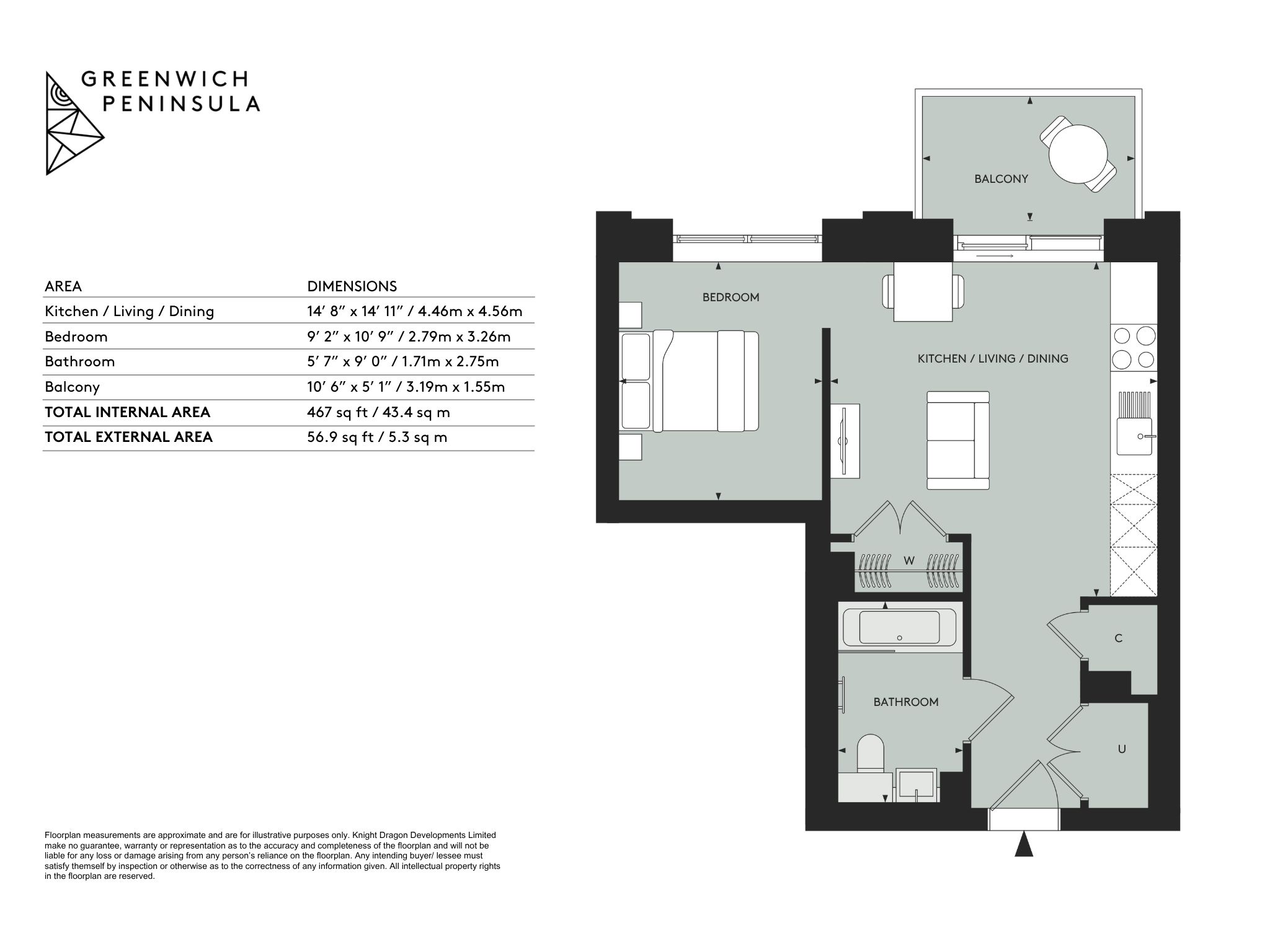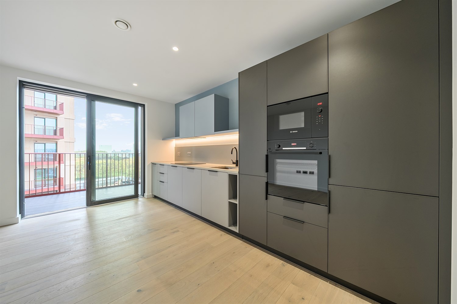 This BRAND NEW, studio apartment sits on the 2nd floor of the building with unobstructed views out onto the private landscaped gardens. It features 459 sqft of internal space, including a bathroom, a large open-plan living/kitchen area and built in storage facilities, alongside an additional balcony.