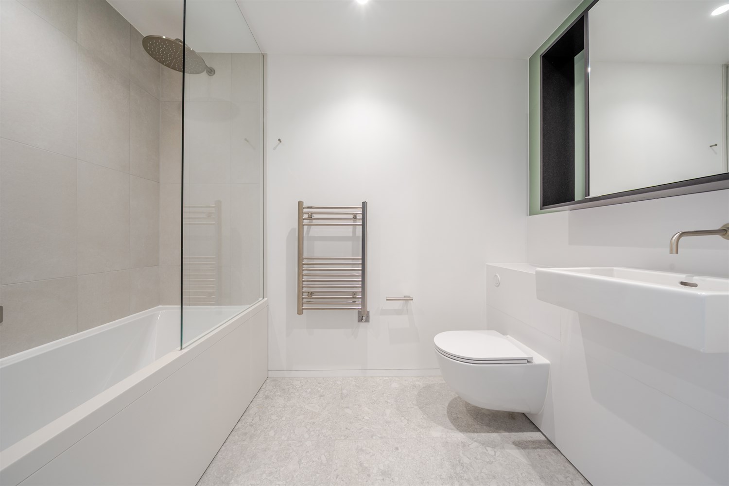 This BRAND NEW, studio apartment sits on the 8th floor of the building with unobstructed views out onto the private landscaped gardens. It features 458 sqft of internal space including a bathroom, a large open-plan living/kitchen area and built in storage facilities, alongside an additional balcony.