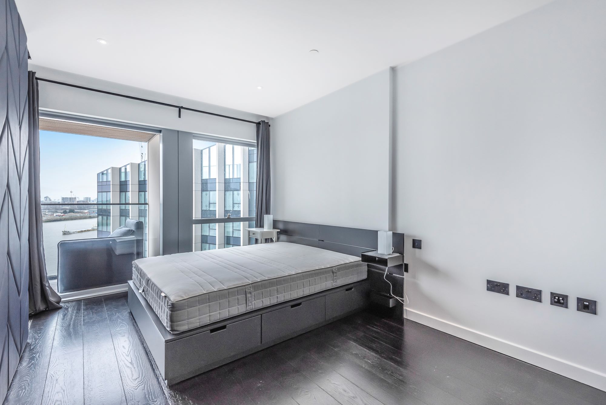 This 10th floor studio apartment enjoys a direct river view from its large private balcony, and is larger than the average studio home, with adaptable accommodation using the featured sliding 'wall'.