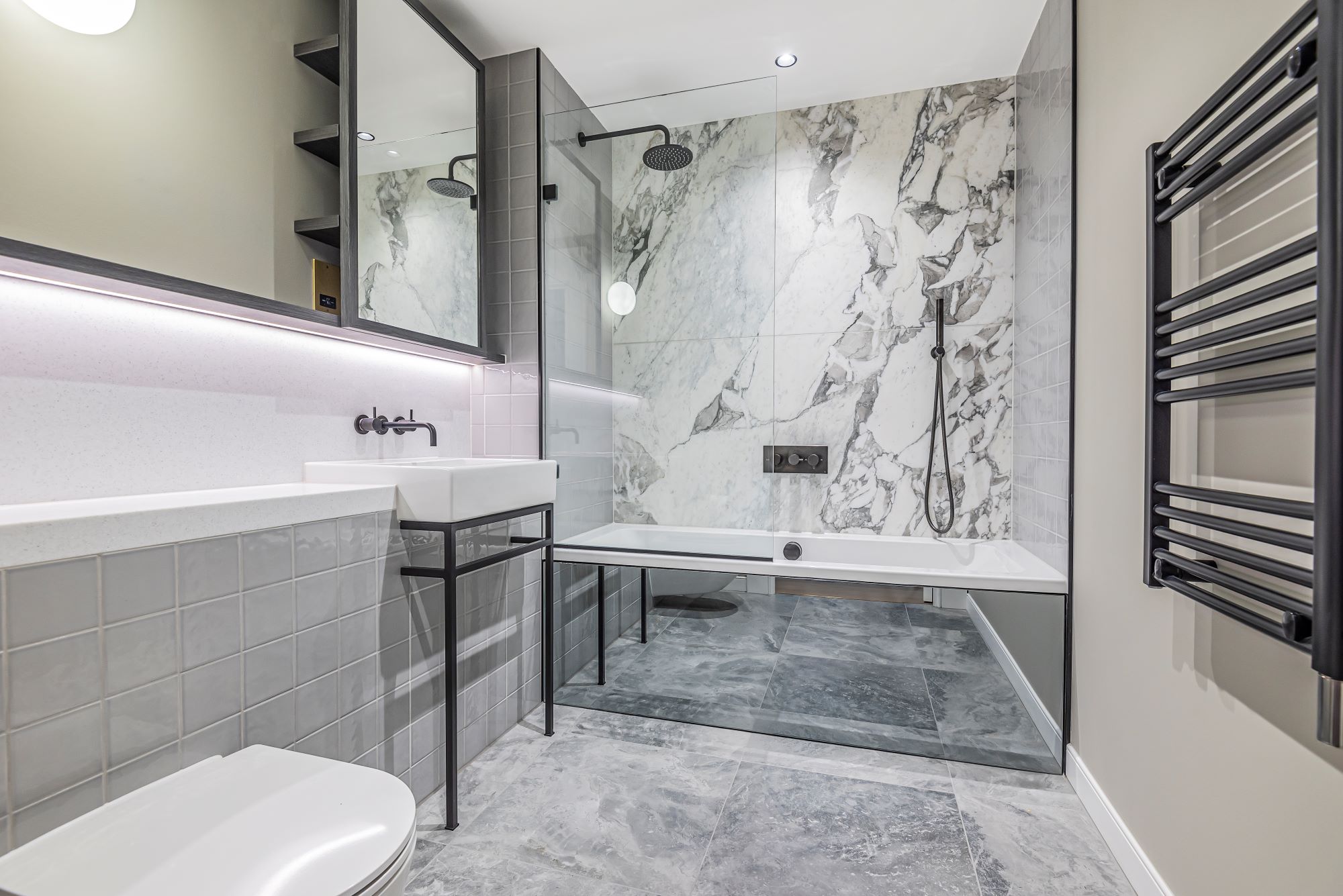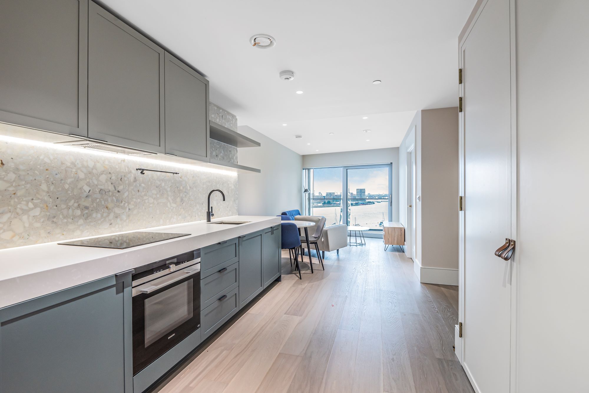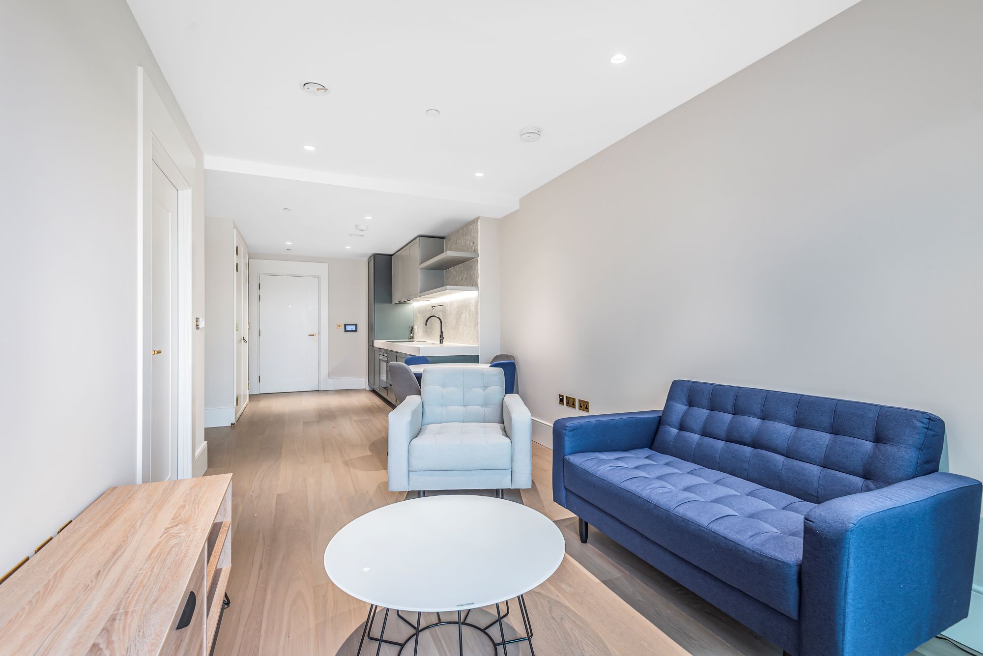 The kitchen boasts expertly crafted cabinetry and sleek, modern finishes, while the bathroom is thoughtfully designed with premium fittings and a neutral colour palette, creating a calm and refined atmosphere.