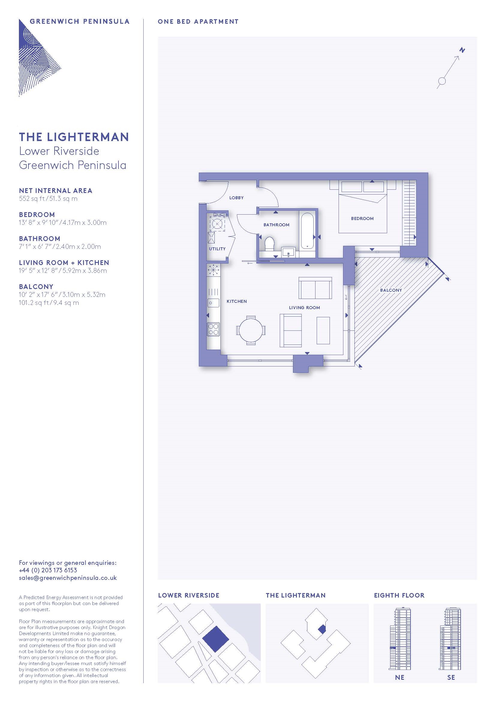 This 8th floor one bedroom apartment is situated in a prime position within the popular Lighterman building, one of Greenwich Peninsula's standout projects within its 'Lower Riverside' neighbourhood.