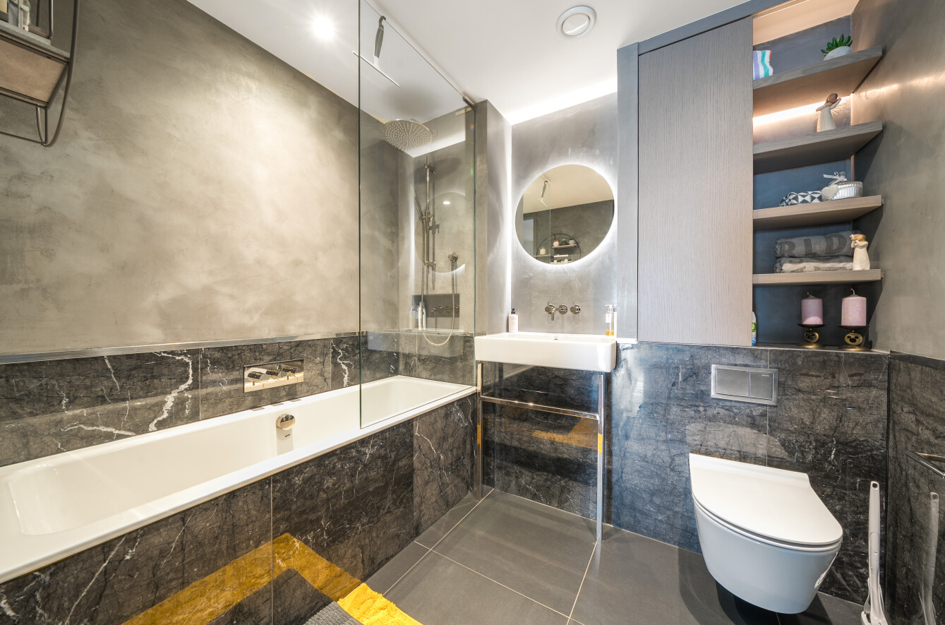 The spacious interior includes two generously sized double bedrooms, both with fitted wardrobes, as well as modern finishes such as underfloor heating. The standout feature is undoubtedly the oversized terrace, offering an impressive extension of the living space - ideal for entertaining, relaxing, or simply enjoying the ever-changing river landscape.