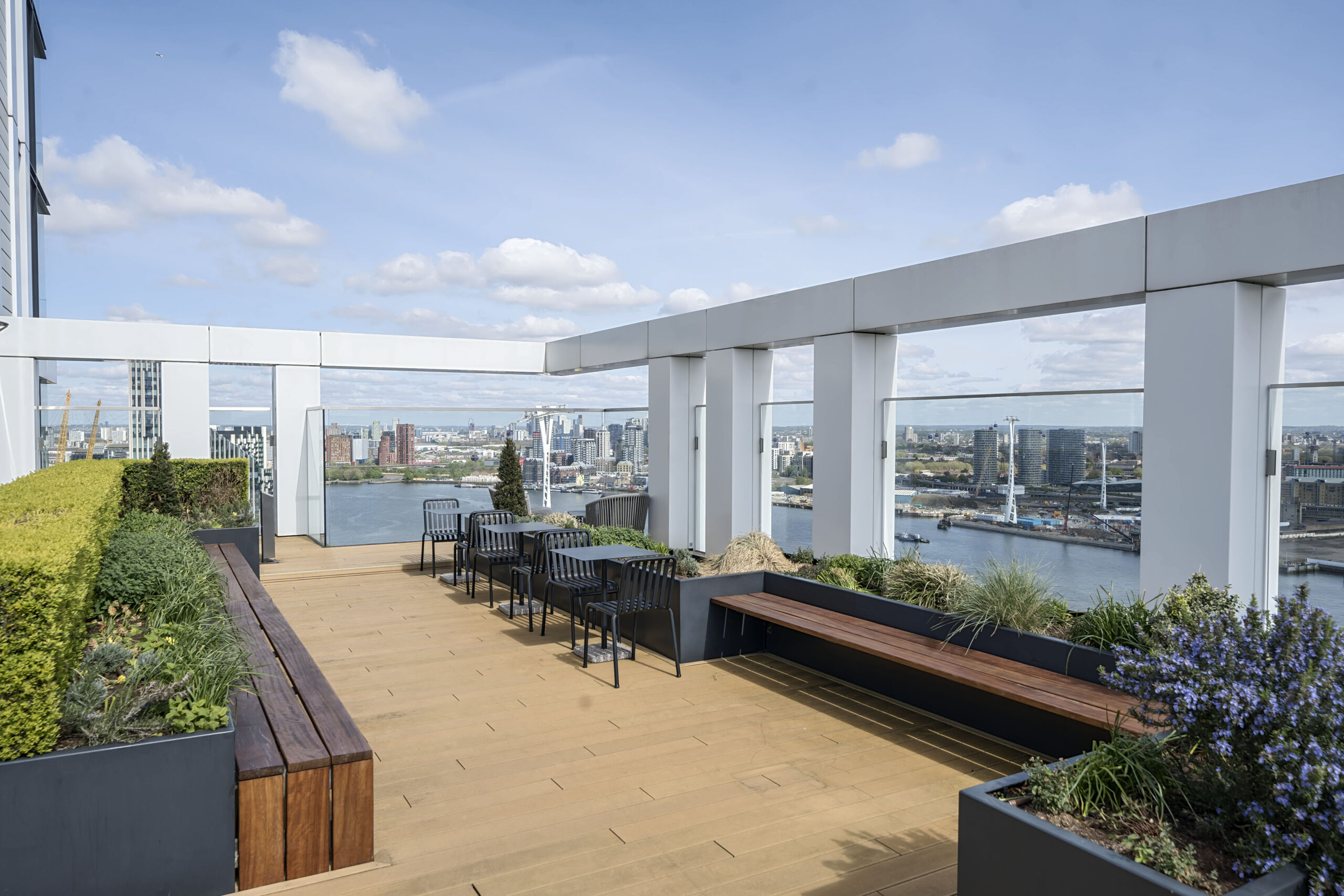 Residents have access to a 23rd floor terrace with panoramic views of the Thames and London skyline, private workstations, wood panelled 'residents' club' and cinema. Further benefits for residents include access to the services provided by the Aperture Building which includes a 24 concierge service, a triplex gym, nursery, Co-Op convenience store and 'EatFan' Pan Asian restaurant.
