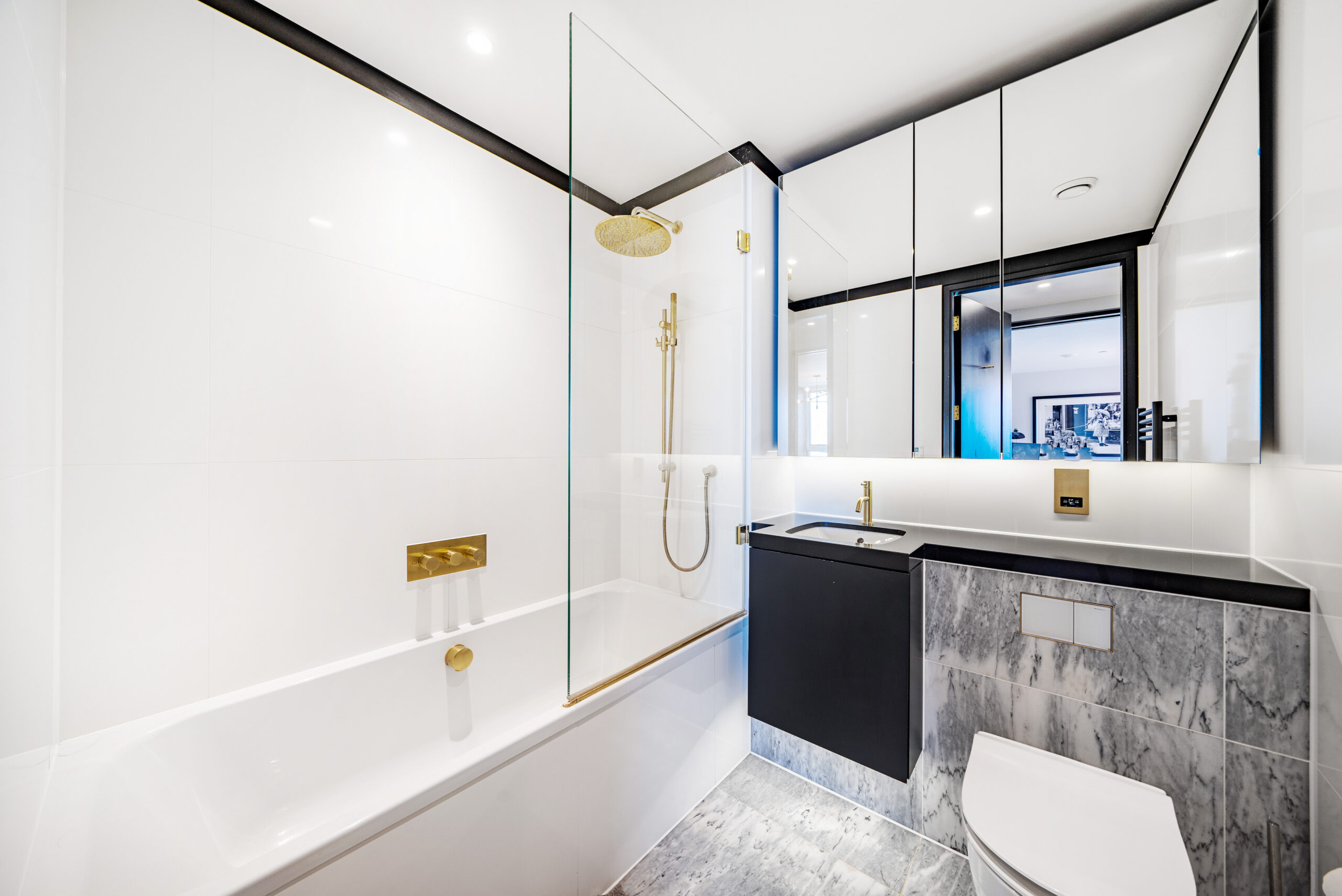 Residents have access to a 23rd floor terrace with panoramic views of the Thames and London skyline, private work from home stations, wood-panelled 'residents' club' and cinema.