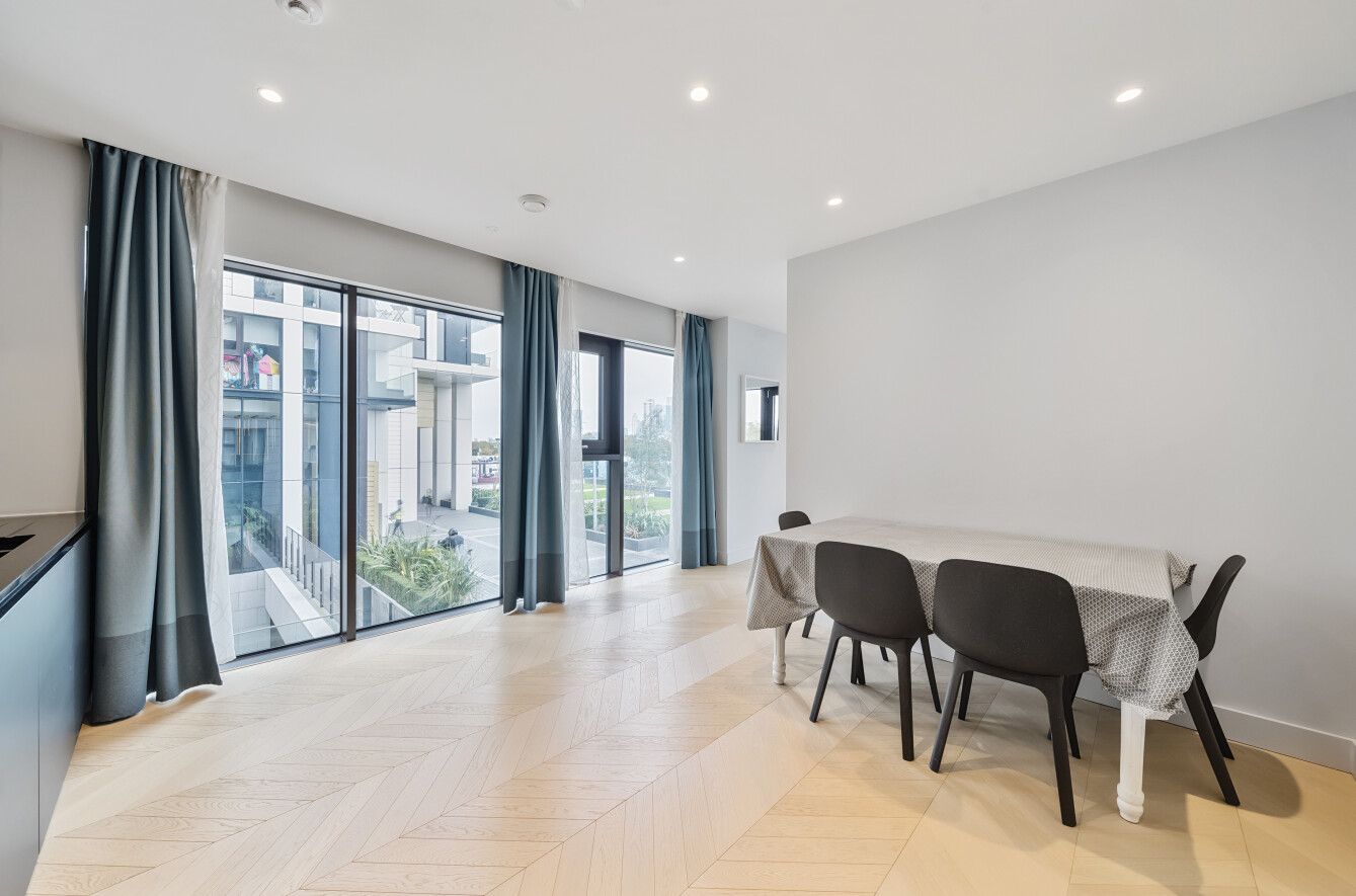 Residents have access to a 23rd floor terrace with panoramic views of the Thames and London skyline, private work from home stations, wood-panelled 'residents' club' and cinema.